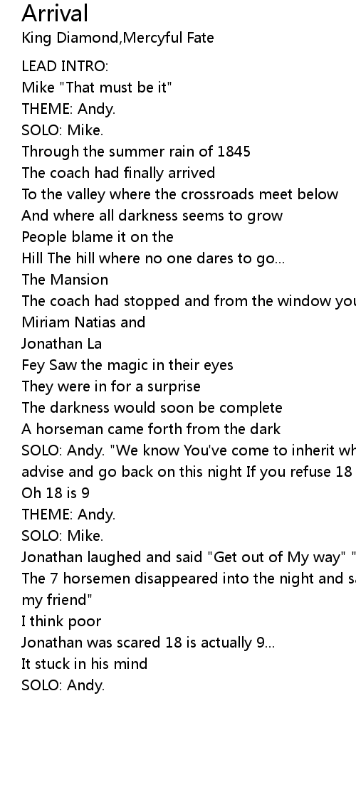 SOLO: Andy. "We know You've come to inherit what's Yours...The Mansion Take our advise and go back on this night If you refuse 18 will become 9...Oh No" |