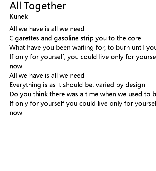 | If only for yourself, you could live only for yourself, but we're all together now | |