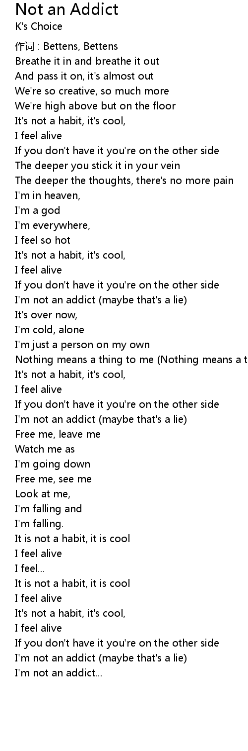 | I' m not an addict maybe that' s a lie | |