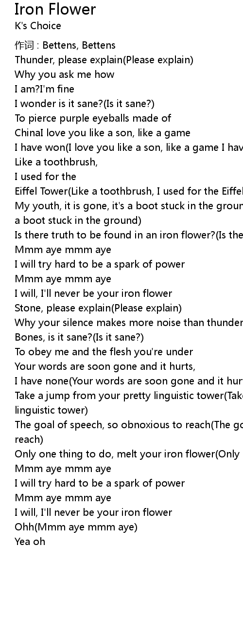 | I will, I' ll never be your iron flower | |