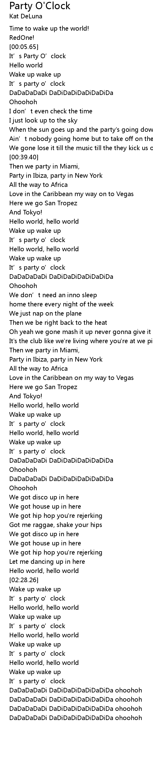 | [00:06.92] | It' s Party O' clock |