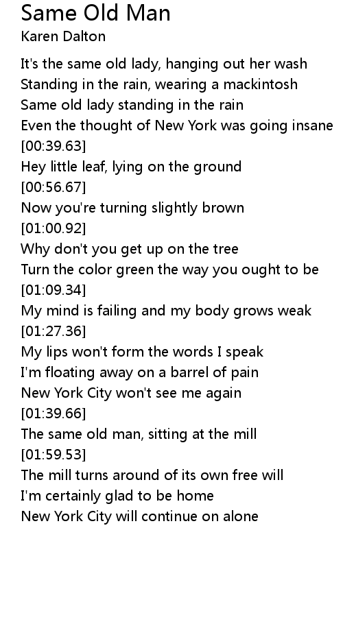 Same old lady standing in the rain |