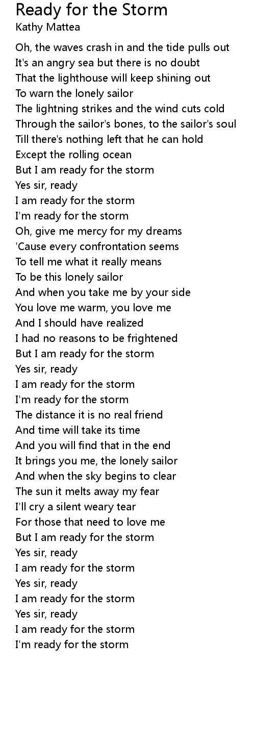 But I am ready for the storm |