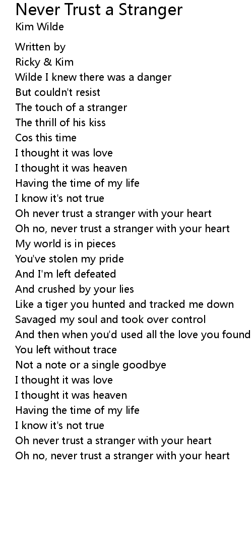 | Oh never trust a stranger with your heart | |