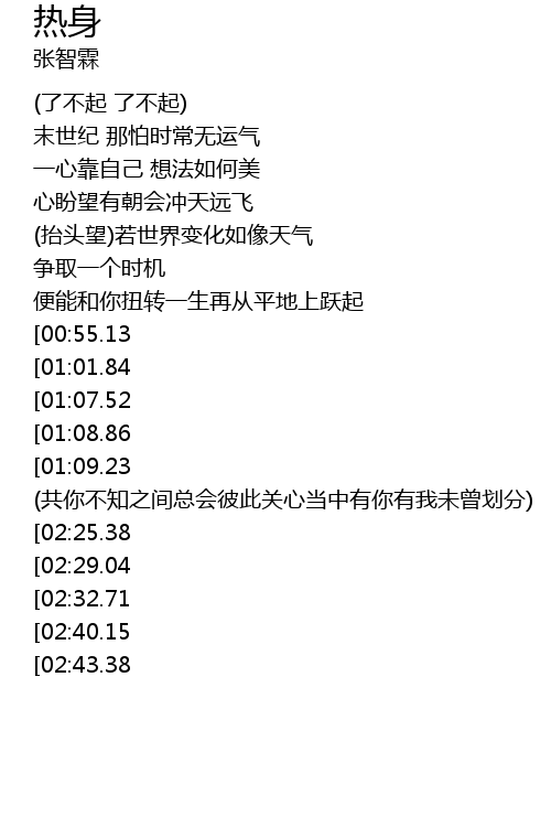 | [03:09.81][02:32.71][01:24.50] | 不惊不险枉费短促一生多少拼搏那怕面临竞争 |