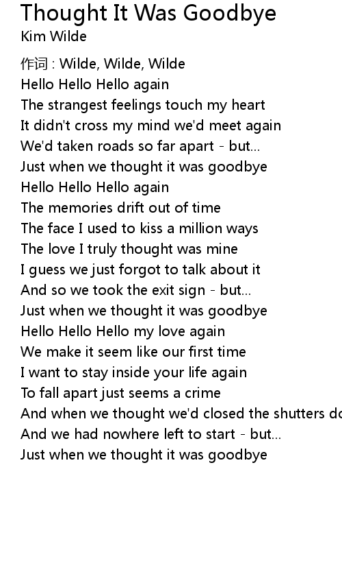 | Song | Thought It Was Goodbye |