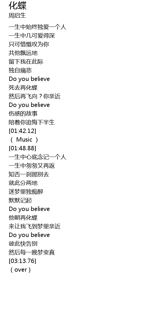 | [00:47.38] | zhǐ kě xī kǎi tàn wèi nǐ |