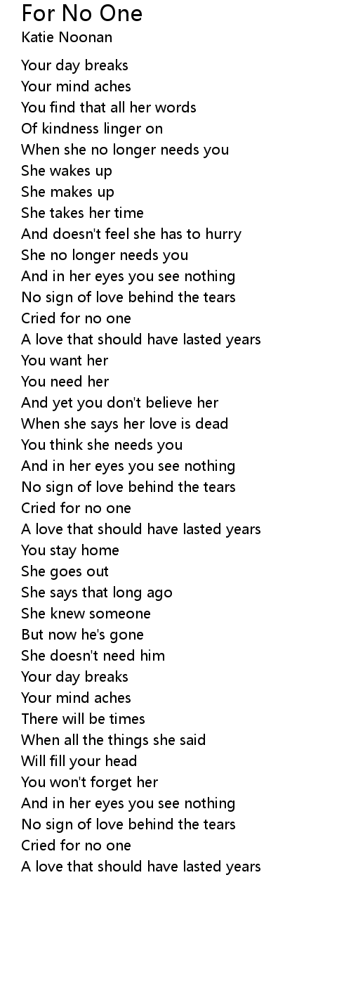 For No One Lyrics