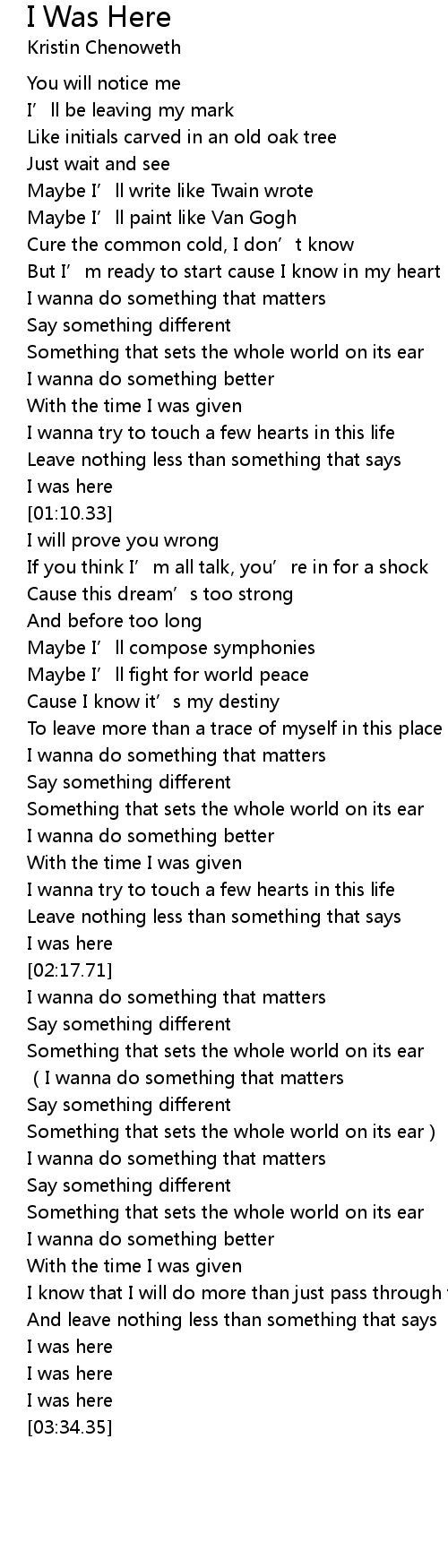 | [01:40.92] | To leave more than a trace of myself in this place |