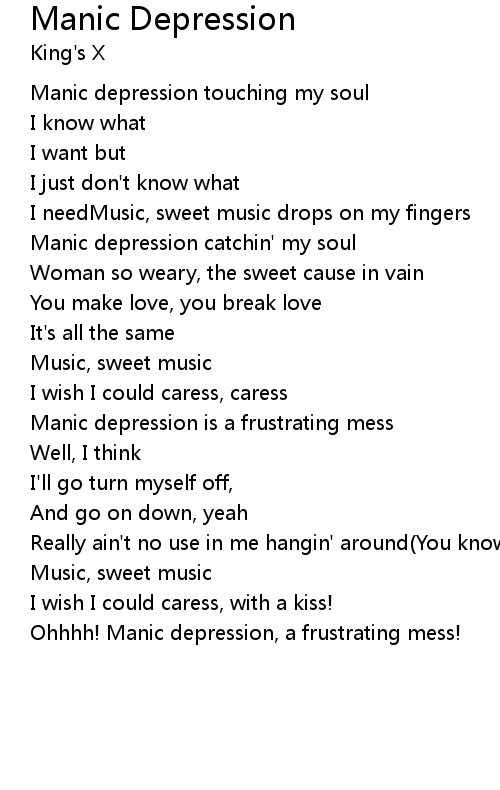 | Manic depression touching my soul | |