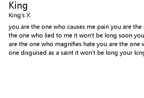 | you are the one who causes me pain you are the one who causes me grief you are the one who lied to me it won't be long soon you will see king is coming... you are the one who magnifies hate you are the one who distorts our love you are the one disguised as a saint it won't be long your kingdom will quake |
