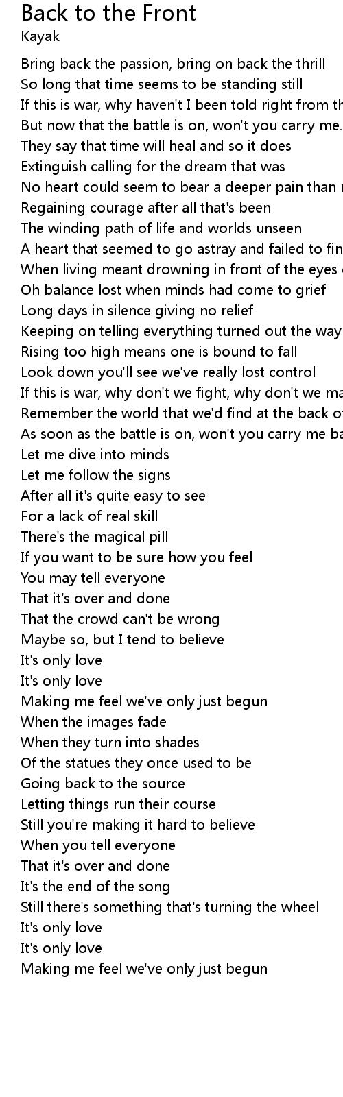 But now that the battle is on, won't you carry me... |
