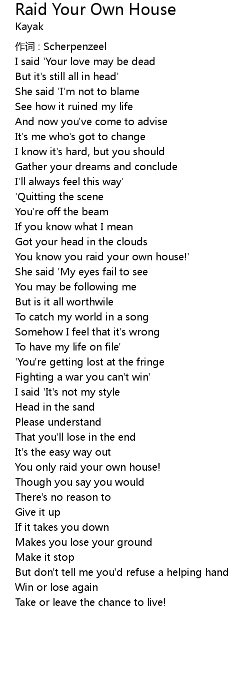 | Song | Raid Your Own House |