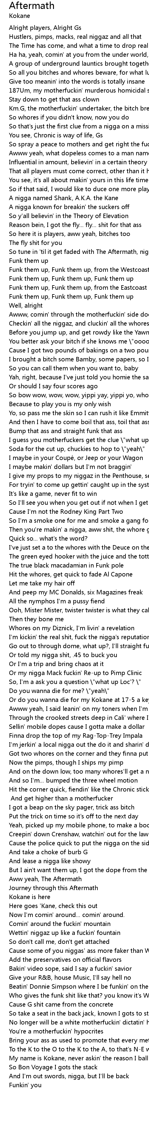 | So tune in 'til it get faded with The Aftermath, niggaz | |