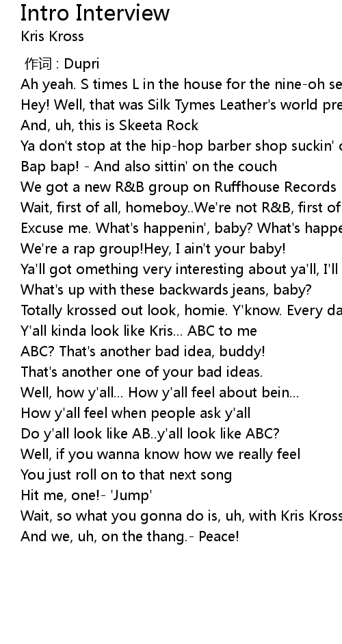 | [00:17.09] | We got a new R&B group on Ruffhouse Records named Kris Kross |