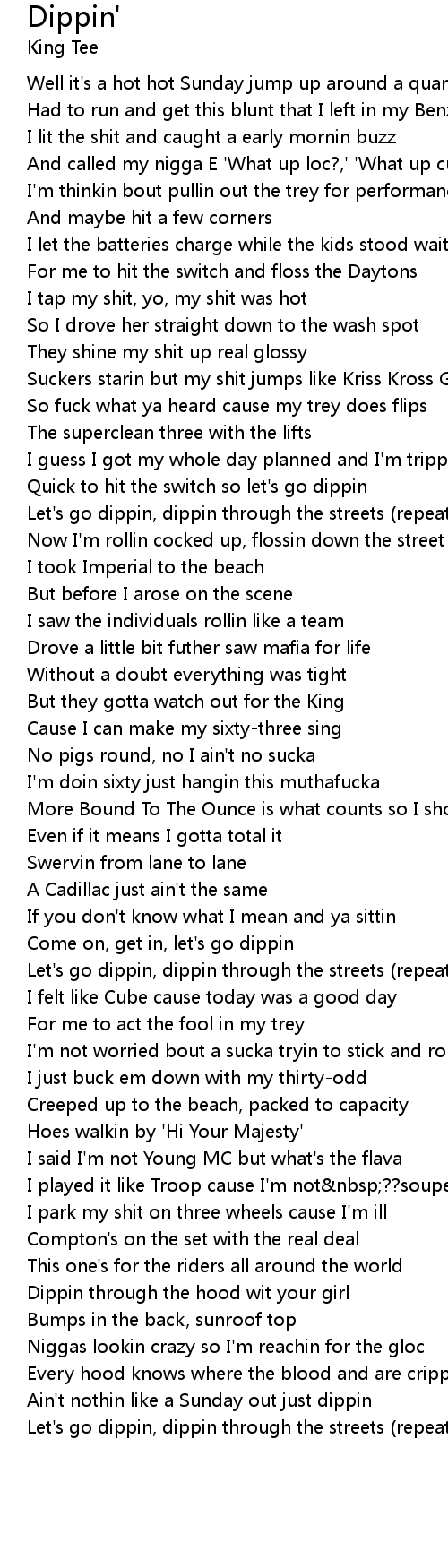 | Let's go dippin, dippin through the streets (repeat 3X) |