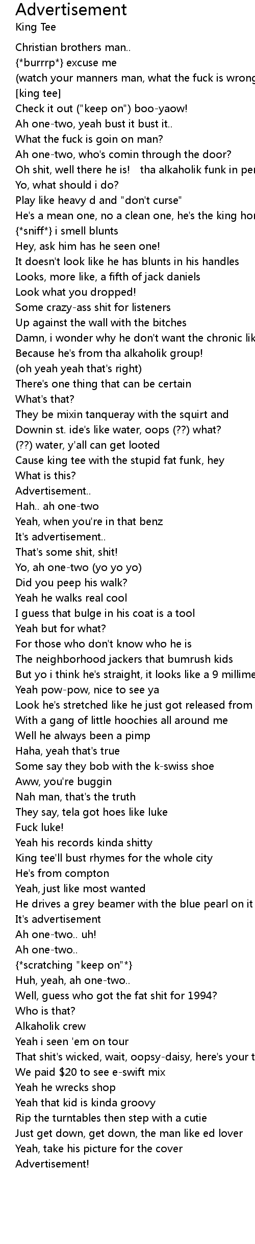 | Cause king tee with the stupid fat funk, hey | |