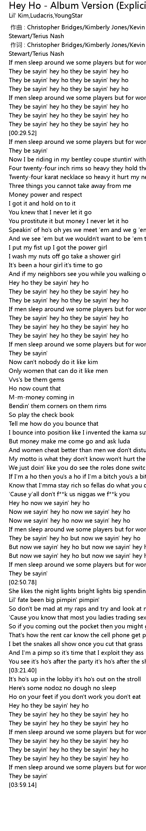 | [02:29.41] | Now we sayin' hey ho now we sayin' hey ho |