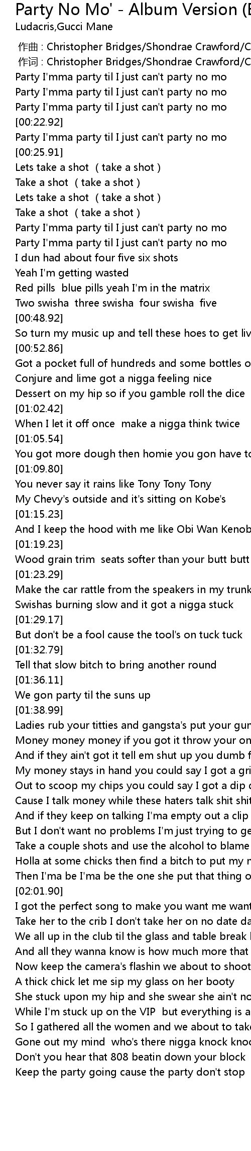 | [00:37.18] | Party I' mma party til I just can' t party no mo |