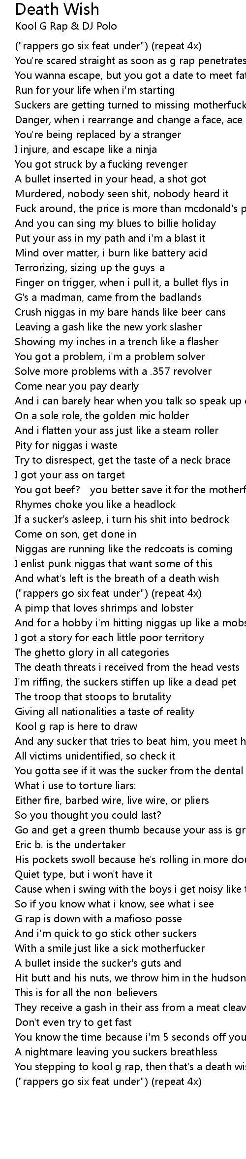 | You stepping to kool g rap, then that's a death wish | |