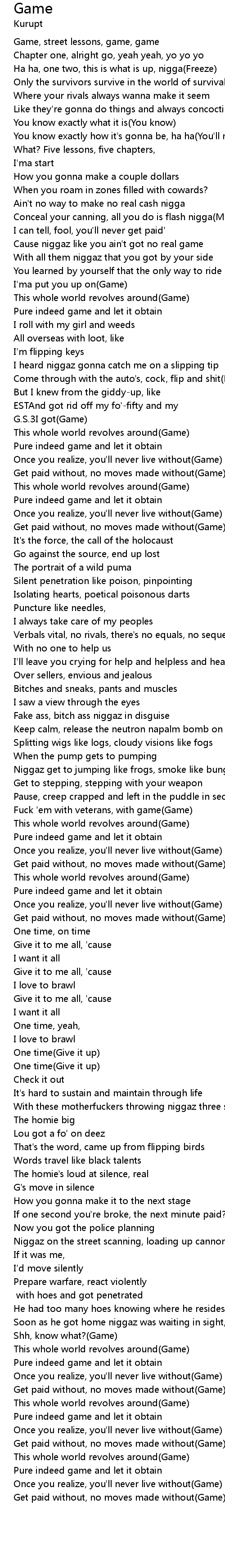 Cause niggaz like you ain't got no real game |