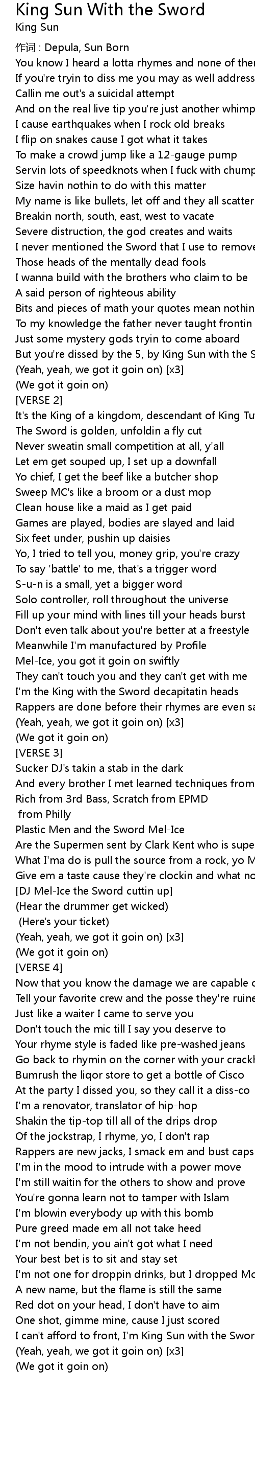 | But you' re dissed by the 5, by King Sun with the Sword | |