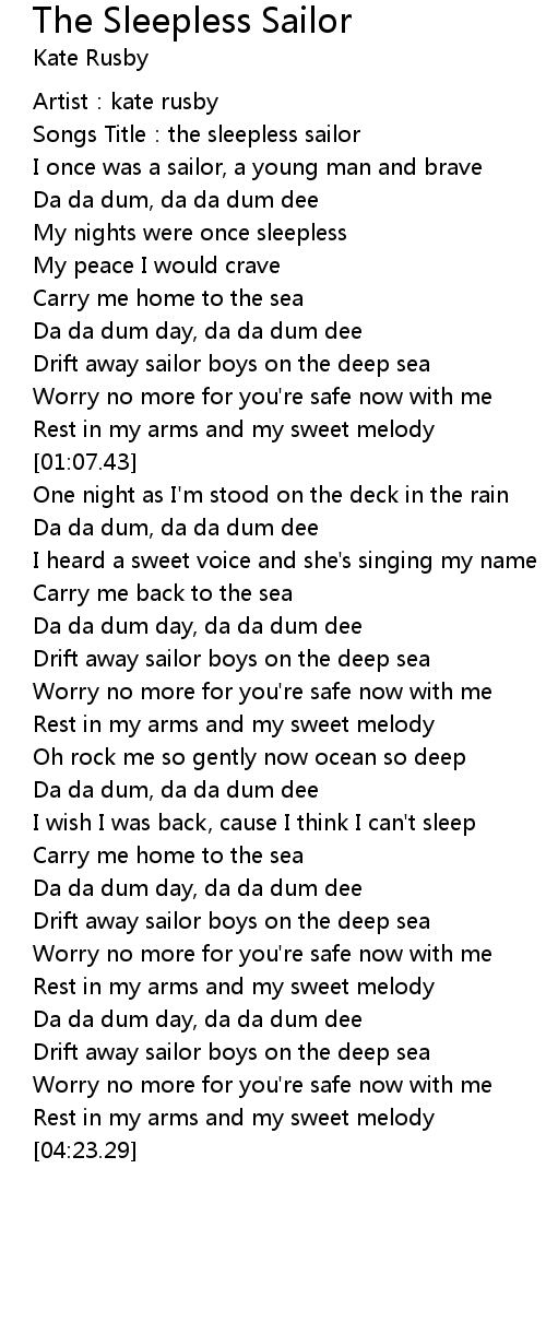 | Song | The Sleepless Sailor |