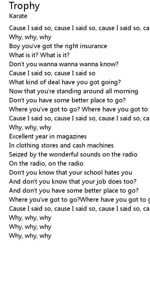| [00:03:590] | Cause I said so, cause I said so, cause I said so, cause I said so |
