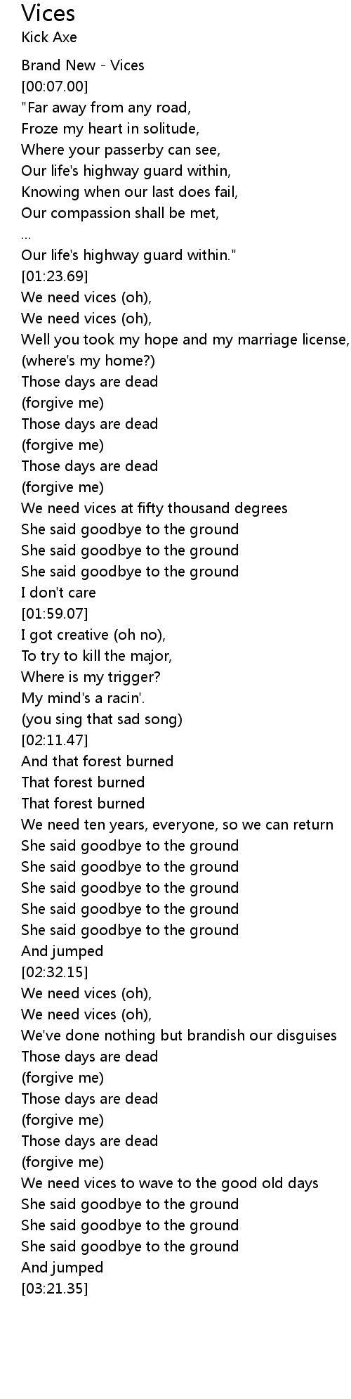 | [00:00.00] | Brand New - Vices |