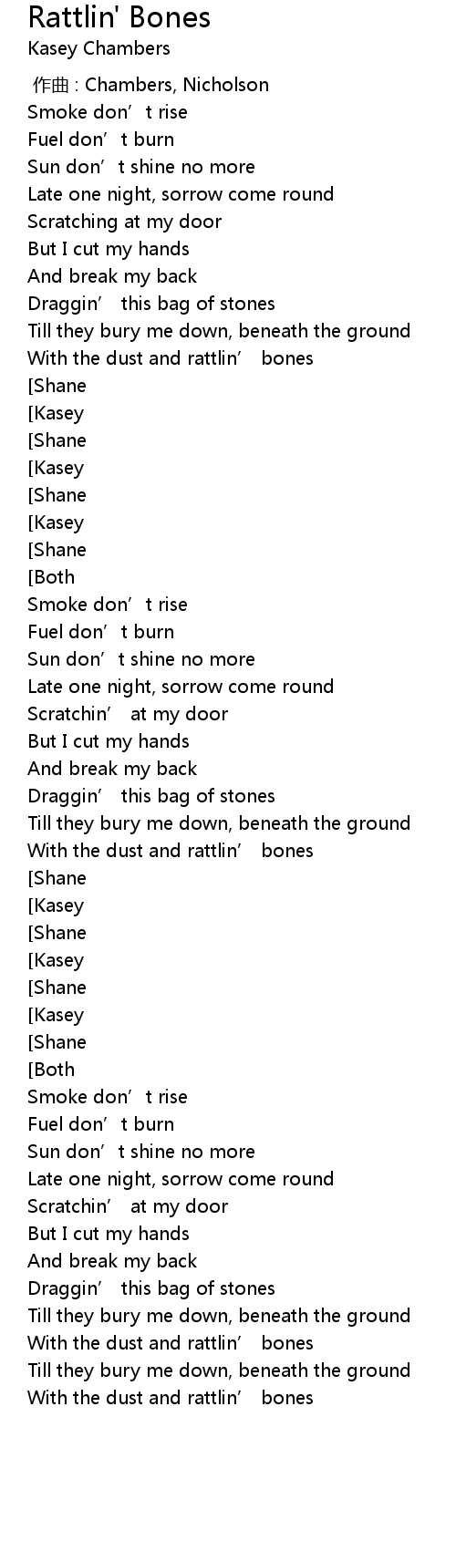 | [00:42.18] | With the dust and rattlin' bones |