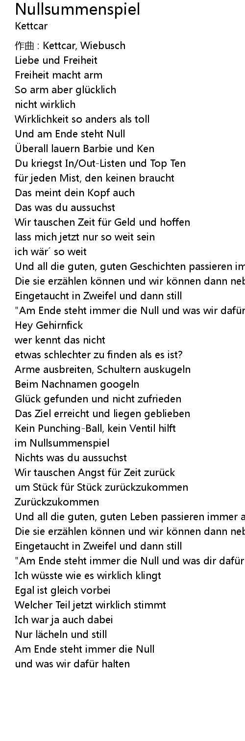 | "Am Ende steht immer die Null und was dir dafür halten" | |