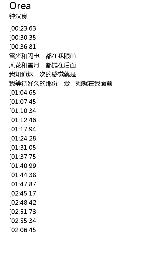 | [03:46.03][00:23.63] | OREA a EA hā qǐng gěi wǒ ài de lì liàng |