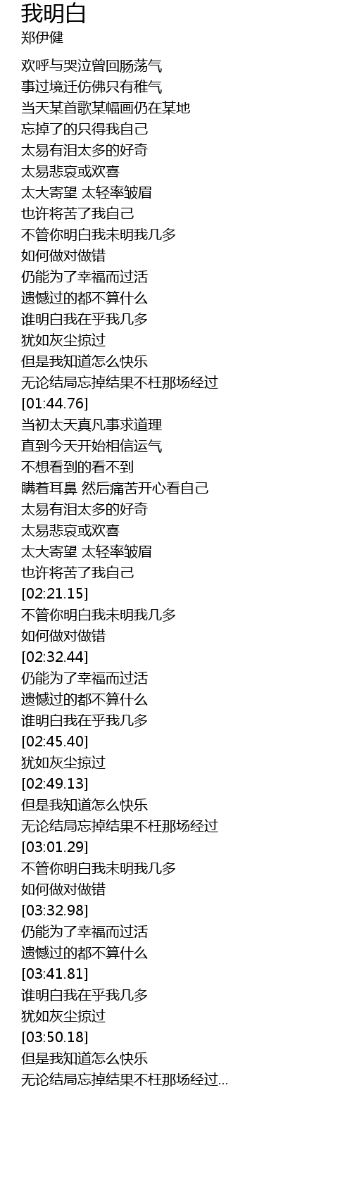 | [02:41.71] | shuí míng bái wǒ zài hu wǒ jǐ duō |