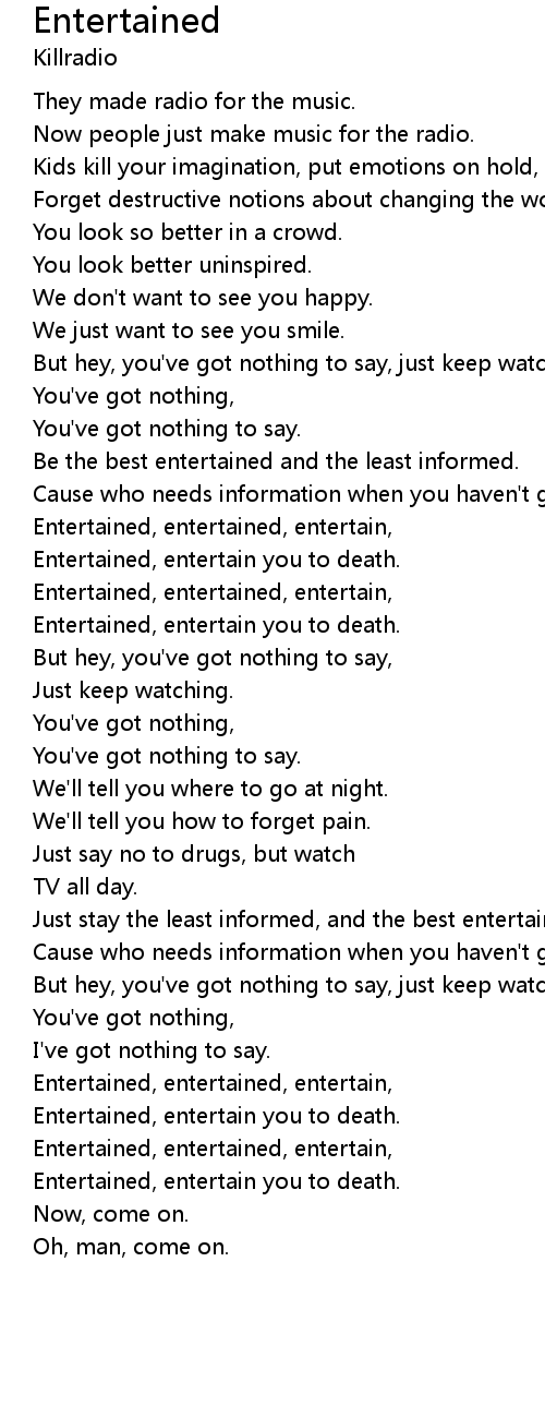 Entertained, entertain you to death. |