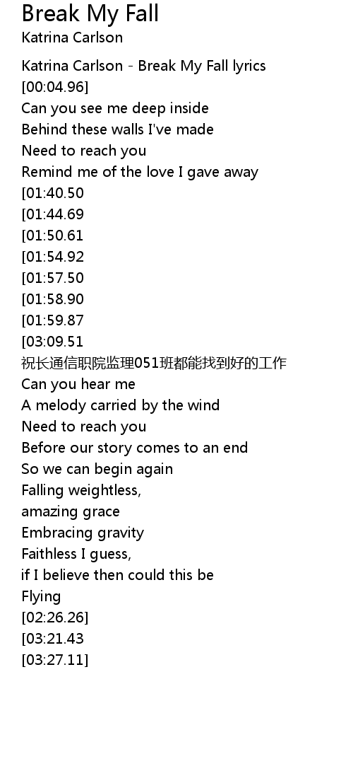 | [00:00.61] | Katrina Carlson - Break My Fall lyrics |