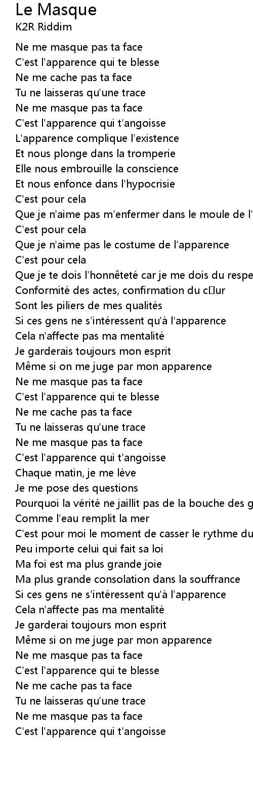 | Ne me masque pas ta face | |