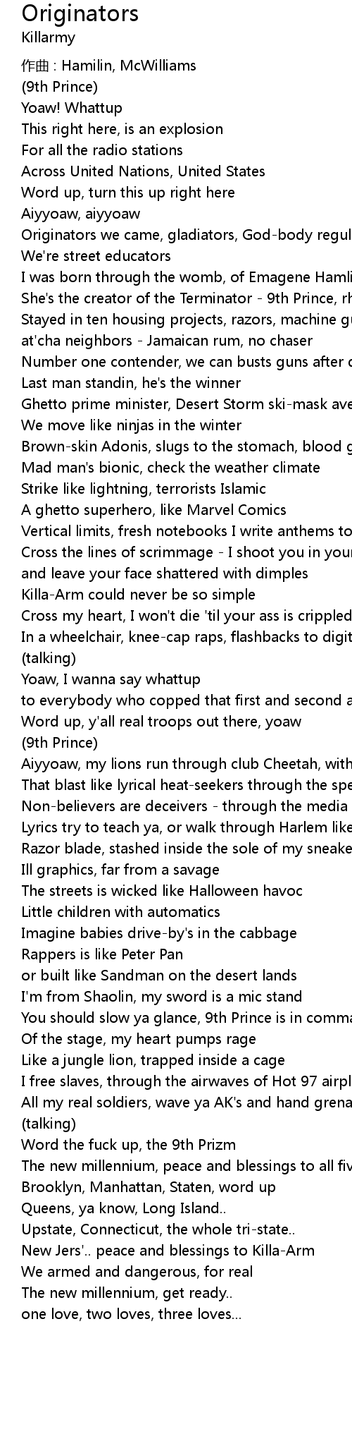 | Lyrics try to teach ya, or walk through Harlem like Black Caesar | |