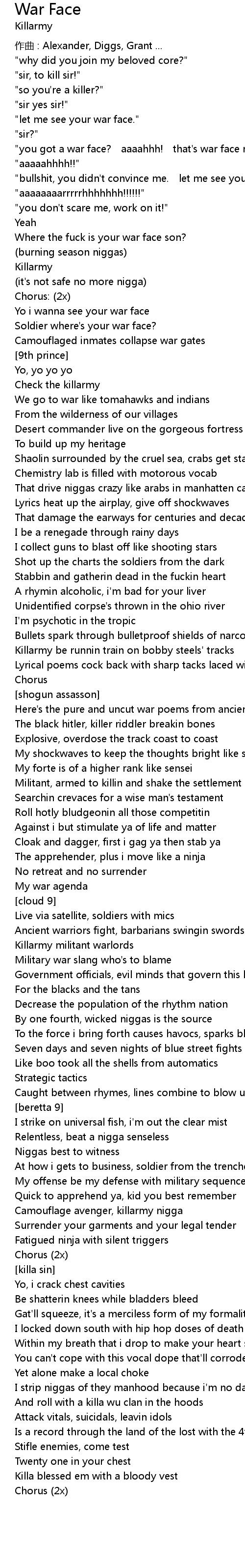 | "bullshit, you didn't convince me. let me see your real war face." | |