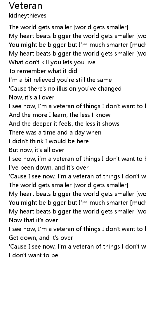 'Cause I see now, I'm a veteran of things I don't want to be |
