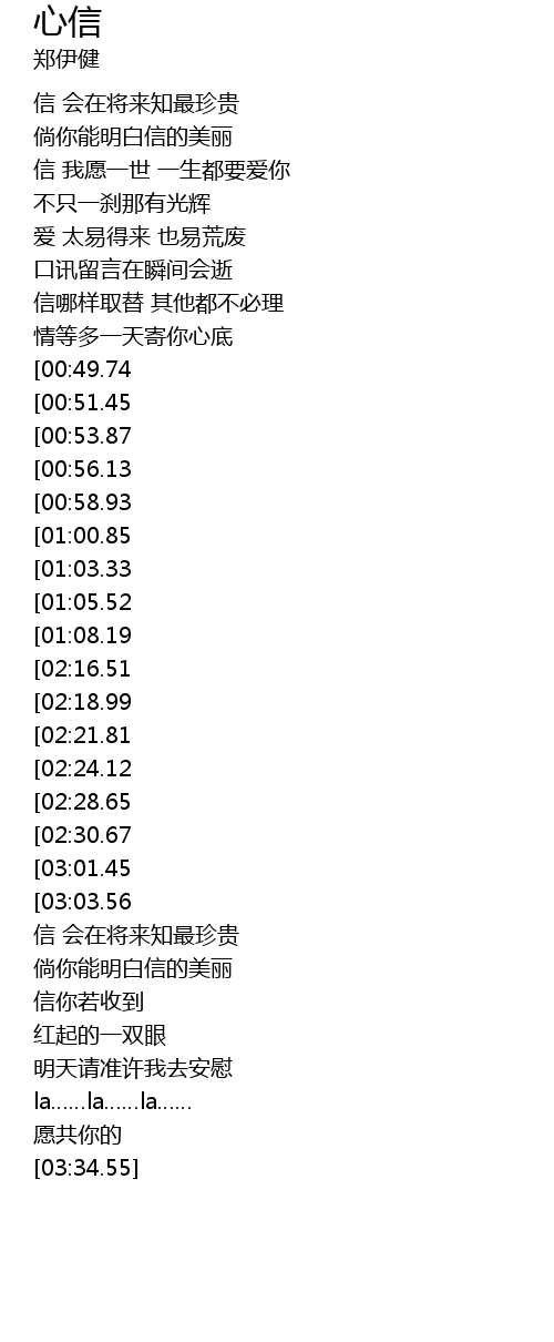 | [02:58.92][02:30.67][01:24.76] | 我的心信 |