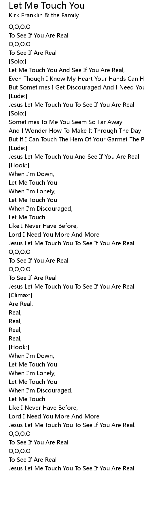 Let Me Touch You And See If You Are Real, |