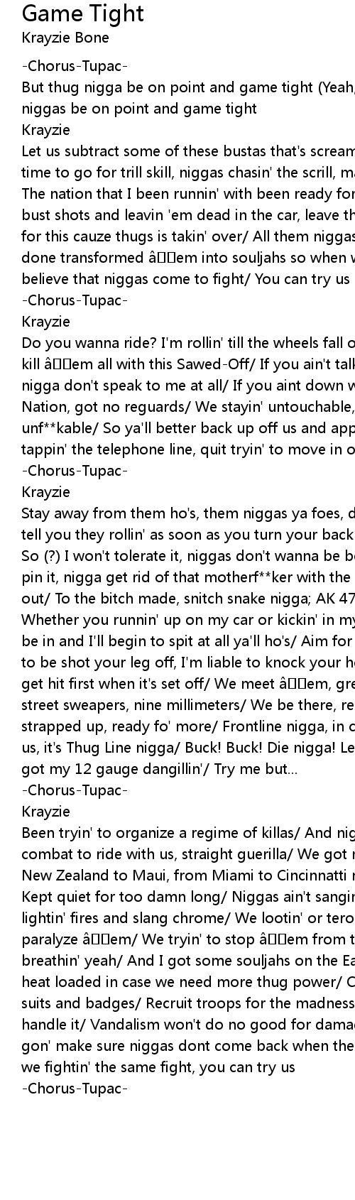 | But thug nigga be on point and game tight Yeah, that' s right... But thug niggas be on point and game tight | |