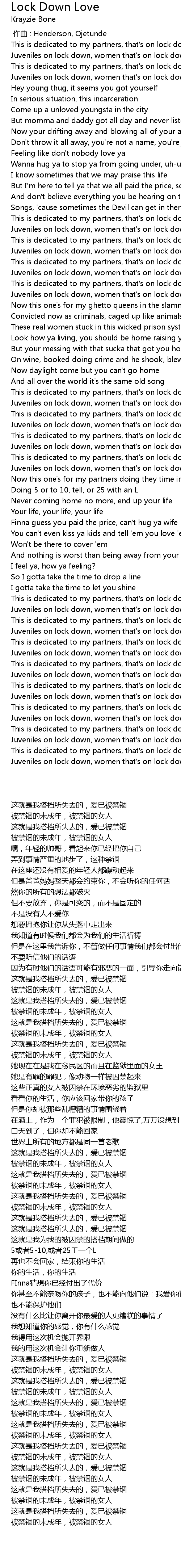 | [00:49.52] | Juveniles on lock down, women that' s on lock down |