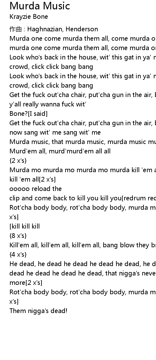 | [4 x's][kill kill kill kill] | Murda music, that murda music, murda music murda music{8 x's} |