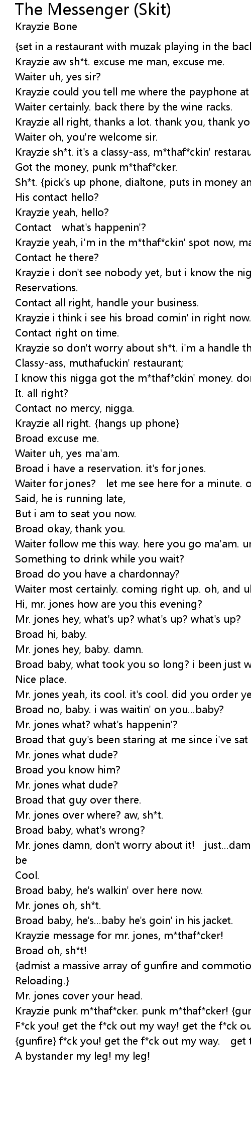 | Krayzie punk m*thaf*cker. punk m*thaf*cker! {gunfire ceases} | |