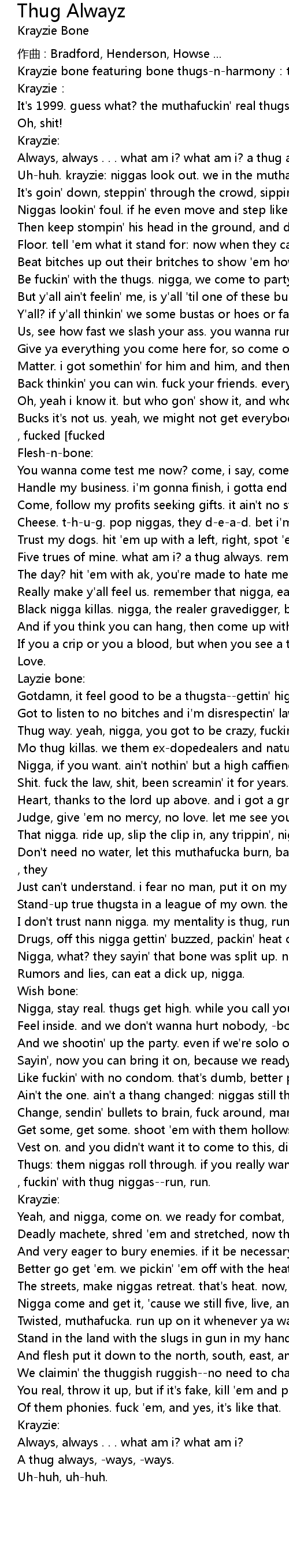 | Always, always . . . what am i? what am i? a thug always, ways, ways. uhhuh, | |