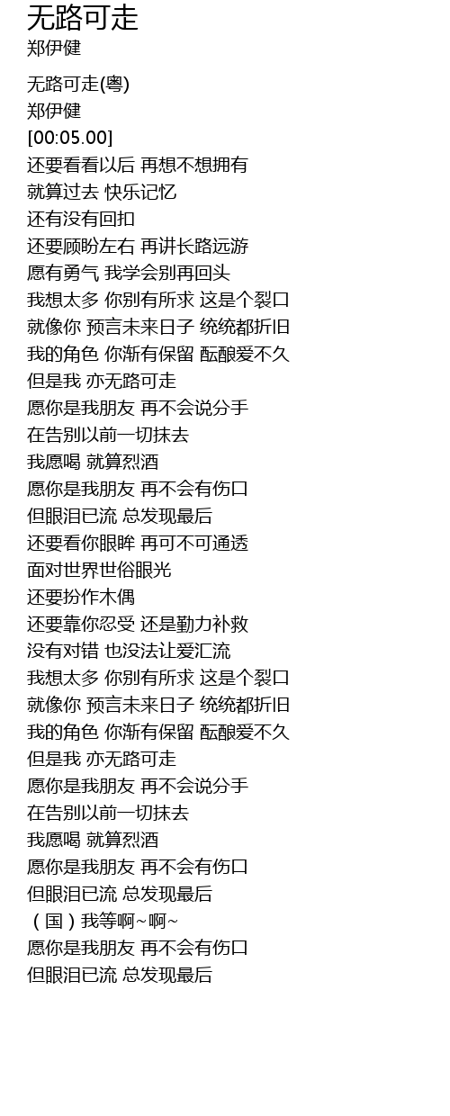 | [02:31.00] | dàn shì wǒ yì wú lù kě zǒu |