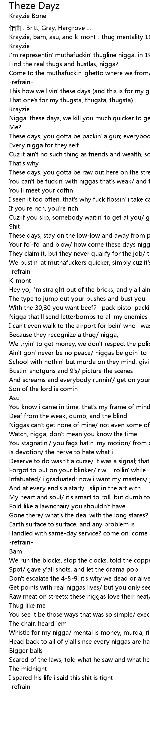 | These days, you gotta be packin' a gun; everybody your enemy/ these days, it's | |