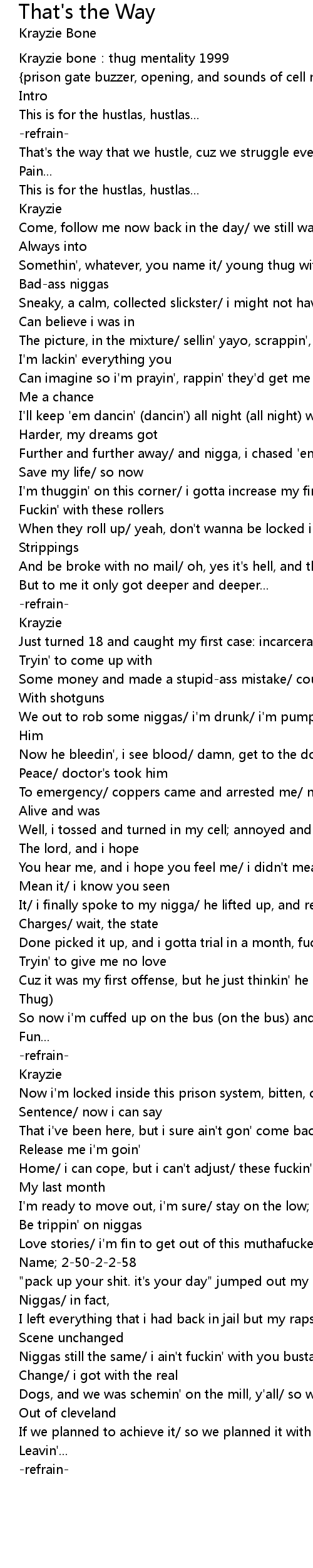 | Well, i tossed and turned in my cell annoyed and sweatin' like hell praise to | |