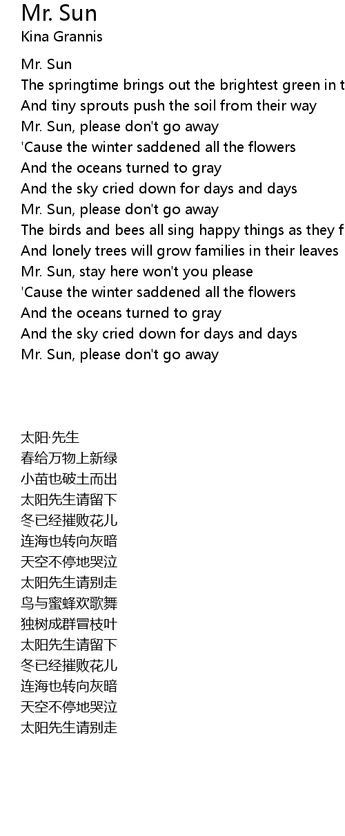 Mr. Sun, please don't go away |
